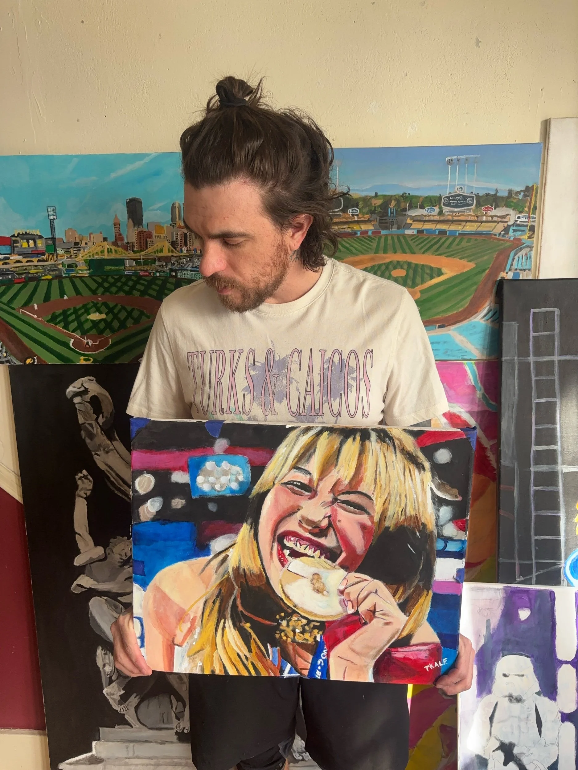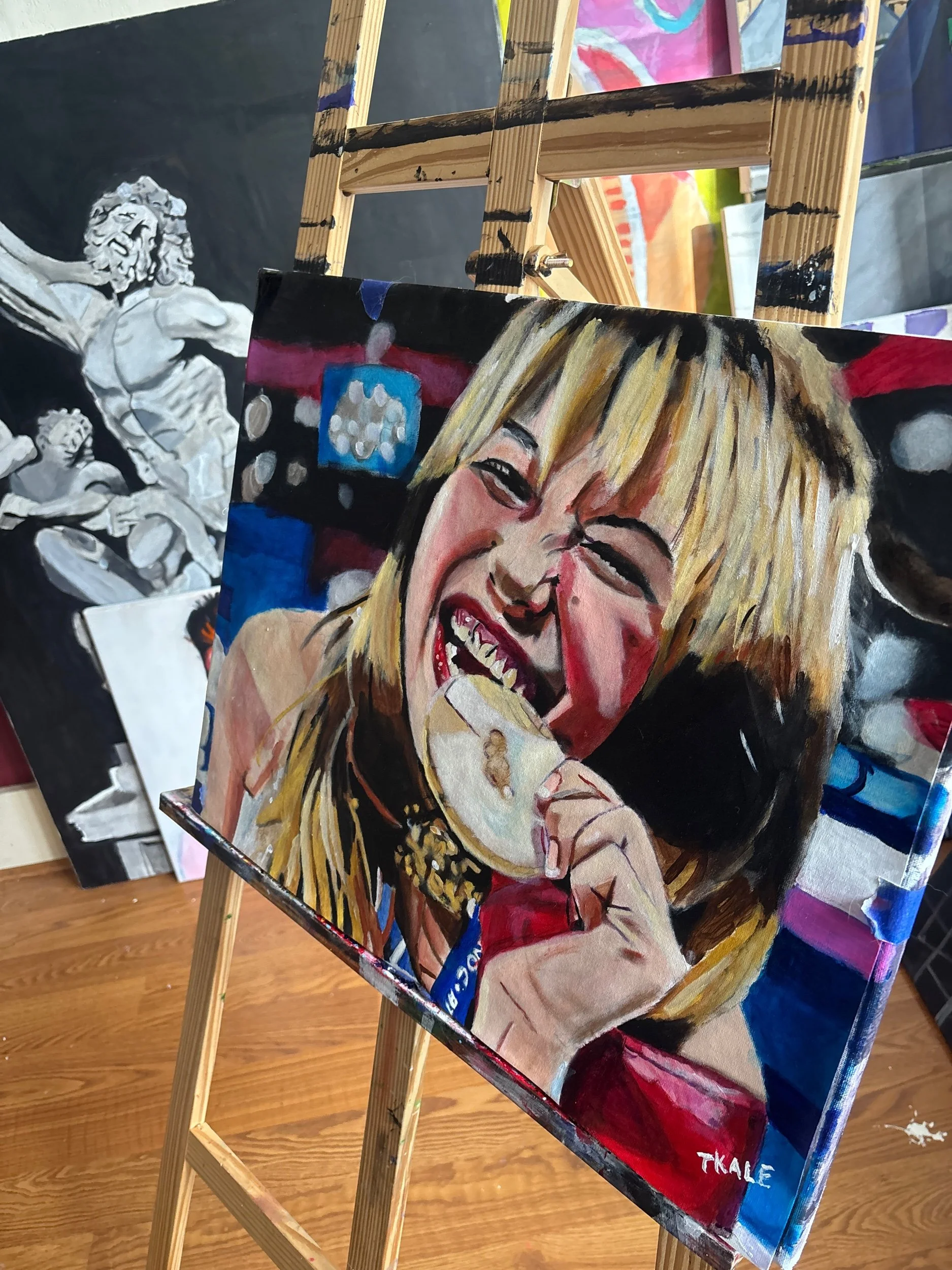 16x20 hand painted acrylic on canvas paper. Alysa Liu, figure skater and 2026 us gold medalist! Really enjoyed watching her compete and wanted to capture the moment!